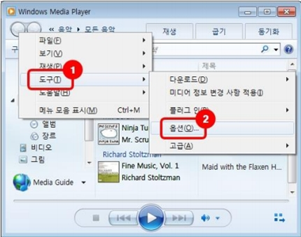 5. WMP 에서 [Alt] 키를 눌러 메뉴박스를 띄우고 [도구] > [옵션]으로 이동